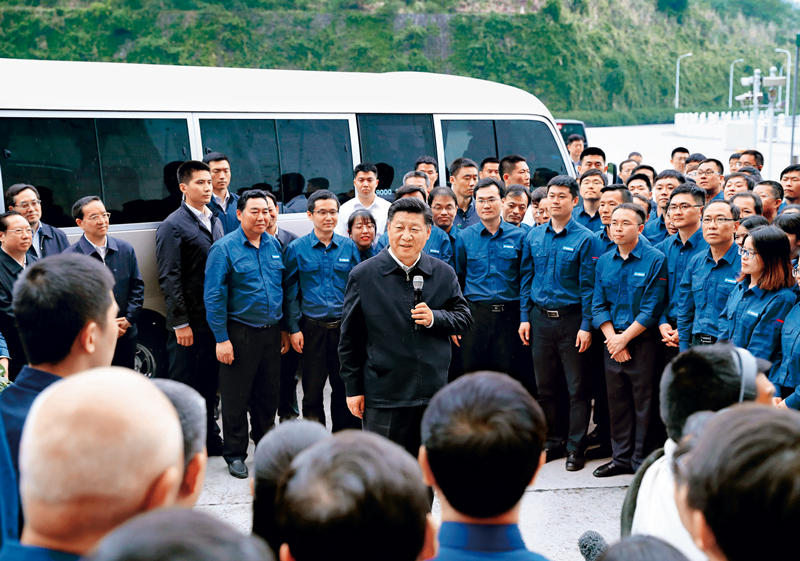 2018年4月26日下午,中共中央總書(shū)記、國(guó)家主席、中央軍委主席習(xí)近平在武漢主持召開(kāi)深入推動(dòng)長(zhǎng)江經(jīng)濟(jì)帶發(fā)展座談會(huì)并發(fā)表重要講話(huà)。這是座談會(huì)前,習(xí)近平于24日下午在三峽大壩左岸電站考察。 新華社記者 謝環(huán)馳/攝