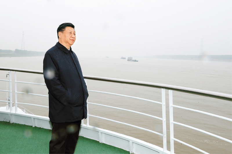 2018年4月26日下午,中共中央總書(shū)記、國(guó)家主席、中央軍委主席習(xí)近平在武漢主持召開(kāi)深入推動(dòng)長(zhǎng)江經(jīng)濟(jì)帶發(fā)展座談會(huì)并發(fā)表重要講話(huà)。這是座談會(huì)前,習(xí)近平于25日上午乘船沿江察看兩岸生態(tài)環(huán)境和發(fā)展建設(shè)情況。 新華社記者 謝環(huán)馳/攝