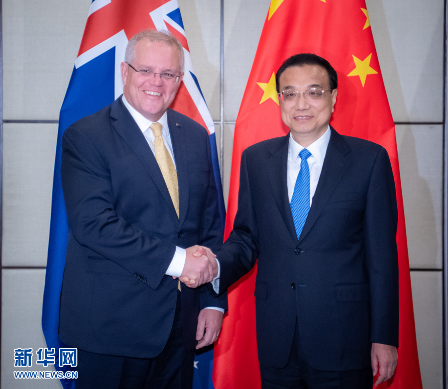 當?shù)貢r間11月3日下午,國務院總理李克強在曼谷出席東亞合作領(lǐng)導人系列會議期間,同澳大利亞總理莫里森舉行第七輪中澳總理年度會晤。 新華社記者翟健嵐攝