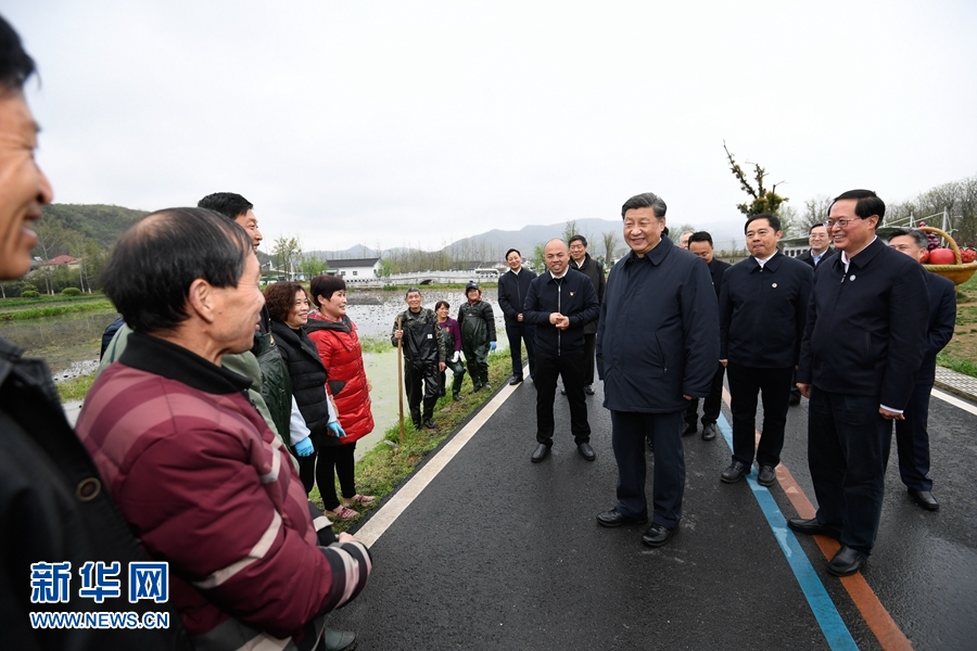 3月30日,中共中央總書記、國家主席、中央軍委主席習近平在浙江省安吉縣天荒坪鎮(zhèn)余村考察,同村民們親切交談,了解該村多年來踐行“綠水青山就是金山銀山”理念、推動綠色發(fā)展發(fā)生的巨大變化。 新華社記者 申宏 攝