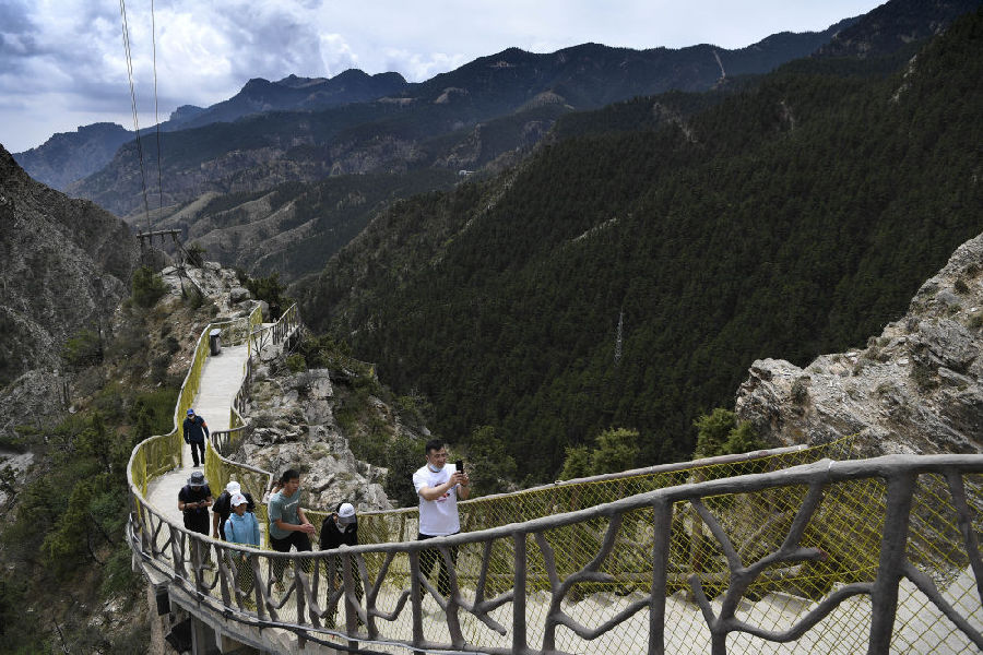 市民在賀蘭山國(guó)家森林公園(新華社記者馮開(kāi)華 攝)