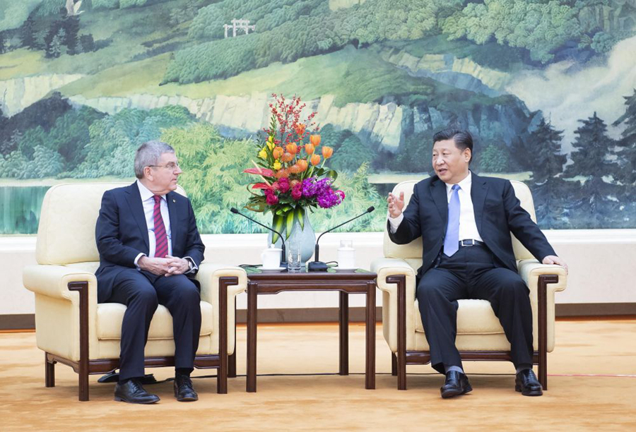 2019年1月,北京,習(xí)近平會(huì)見(jiàn)國(guó)際奧委會(huì)主席巴赫。(新華社記者李濤 攝)