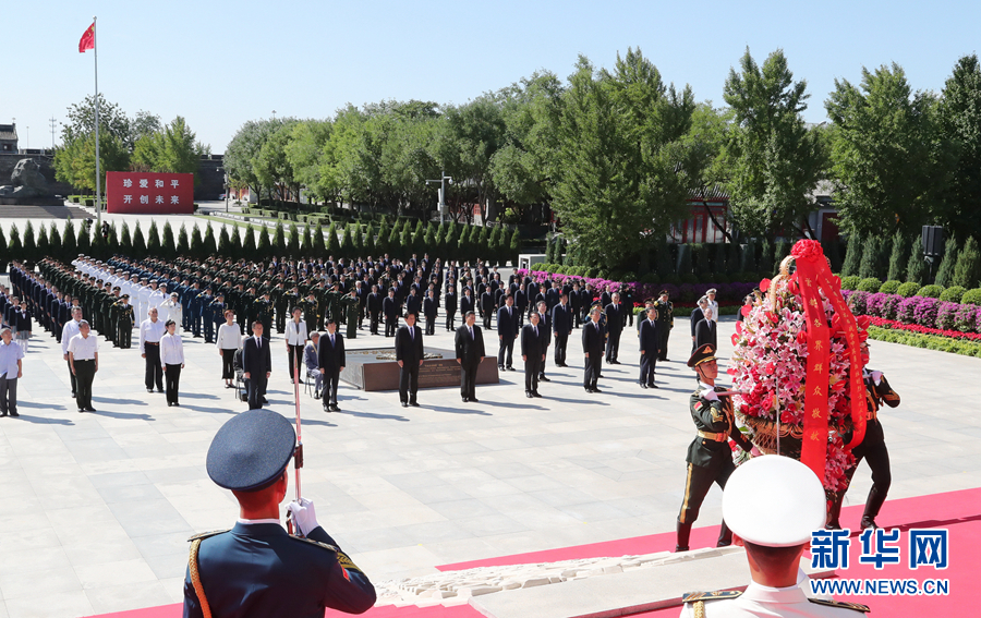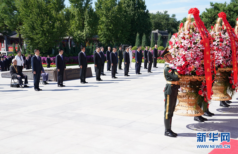 9月3日上午,習近平、李克強、栗戰(zhàn)書、汪洋、王滬寧、趙樂際、韓正、王岐山等黨和國家領(lǐng)導人來到中國人民抗日戰(zhàn)爭紀念館,出席紀念中國人民抗日戰(zhàn)爭暨世界反法西斯戰(zhàn)爭勝利75周年向抗戰(zhàn)烈士敬獻花籃儀式。 新華社記者 王曄 攝