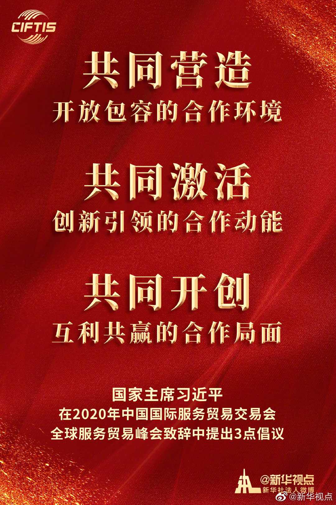國家主席習(xí)近平在2020年中國國際服務(wù)貿(mào)易交易會全球服務(wù)貿(mào)易峰會上發(fā)表視頻致辭時就服務(wù)業(yè)開放合作提出3點(diǎn)倡議:共同營造開放包容的合作環(huán)境;共同激活創(chuàng)新引領(lǐng)的合作動能;共同開創(chuàng)互利共贏的合作局面。?