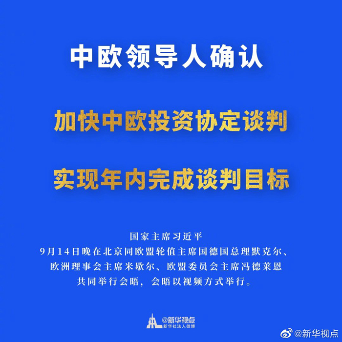 中歐領(lǐng)導(dǎo)人確認(rèn),加快中歐投資協(xié)定談判,實(shí)現(xiàn)年內(nèi)完成談判的目標(biāo)。 ????