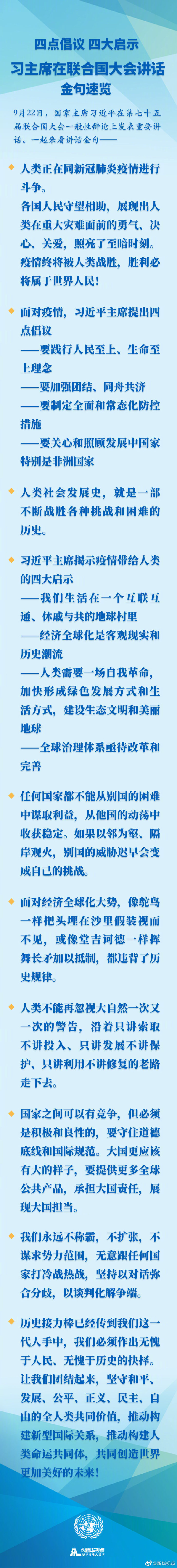 四點(diǎn)倡議 四大啟示 習(xí)主席在聯(lián)合國大會(huì)講話金句速覽