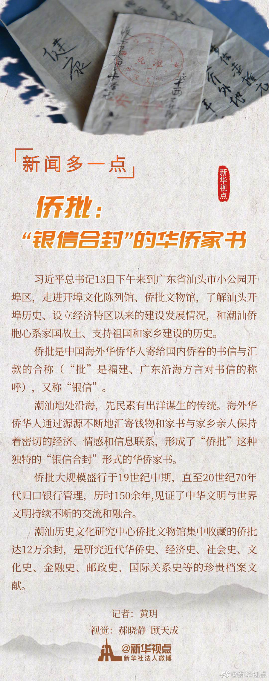 新聞多一點(diǎn)丨僑批:“銀信合封”的華僑家書(shū)