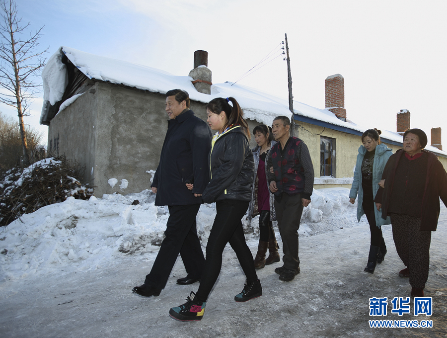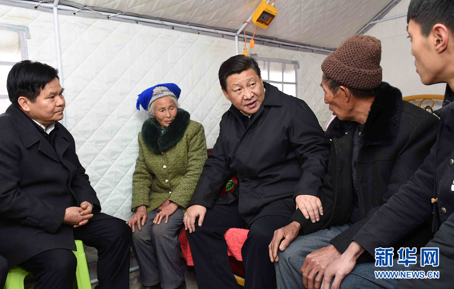2012年12月30日,習(xí)近平在河北省阜平縣龍泉關(guān)鎮(zhèn)駱駝灣村看望慰問困難群眾。 新華社記者 蘭紅光 攝