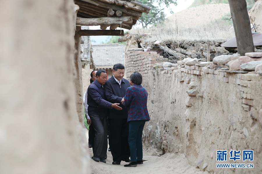 2017年6月21日下午,習(xí)近平在山西省忻州市岢嵐縣趙家洼村看望特困戶王三女一家。?新華社記者 龐興雷 攝