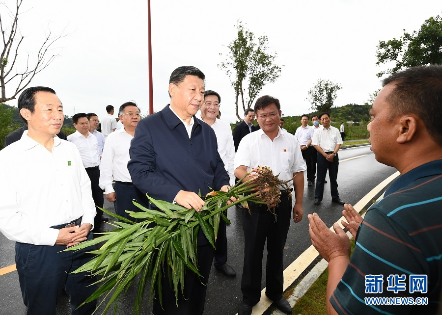 2020年9月16日至18日,習(xí)近平在湖南考察。這是16日下午,習(xí)近平在郴州市汝城縣文明瑤族鄉(xiāng)沙洲瑤族村沙洲現(xiàn)代農(nóng)旅示范基地,了解扶貧產(chǎn)業(yè)發(fā)展和增收情況。新華社記者 謝環(huán)馳 攝