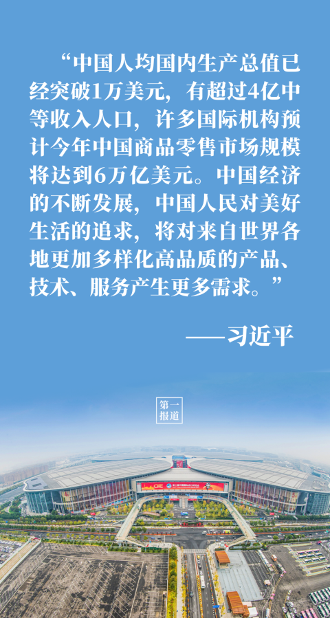 “中國(guó)的發(fā)展離不開世界,世界的繁榮也需要中國(guó)?!闭劦街袊?guó)大市場(chǎng)蘊(yùn)藏的大機(jī)遇,習(xí)主席用事實(shí)和數(shù)據(jù)說(shuō)話: