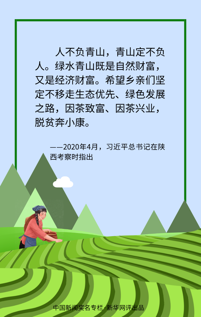 推進(jìn)綠色發(fā)展,讓綠水青山造福人民群眾,不是權(quán)宜之計(jì),而是長久之策,必須咬定青山不放松,風(fēng)雨無阻向前行。面對(duì)新冠肺炎疫情沖擊和世界經(jīng)濟(jì)衰退影響,堅(jiān)定不移打贏脫貧攻堅(jiān)收官戰(zhàn),要增強(qiáng)生態(tài)文明建設(shè)的戰(zhàn)略定力,向綠色轉(zhuǎn)型要出路、向生態(tài)產(chǎn)業(yè)要?jiǎng)恿Γㄟ^發(fā)展綠色產(chǎn)業(yè)吸引大量就業(yè),通過發(fā)展休閑旅游釋放無限商機(jī)。端好綠水青山“金飯碗”,念活綠色經(jīng)濟(jì)“致富經(jīng)”,幸福生活和可持續(xù)發(fā)展將更有支撐,美麗中國將鋪展開新的畫卷。(文字:馬若虎 海報(bào):滕華)