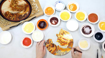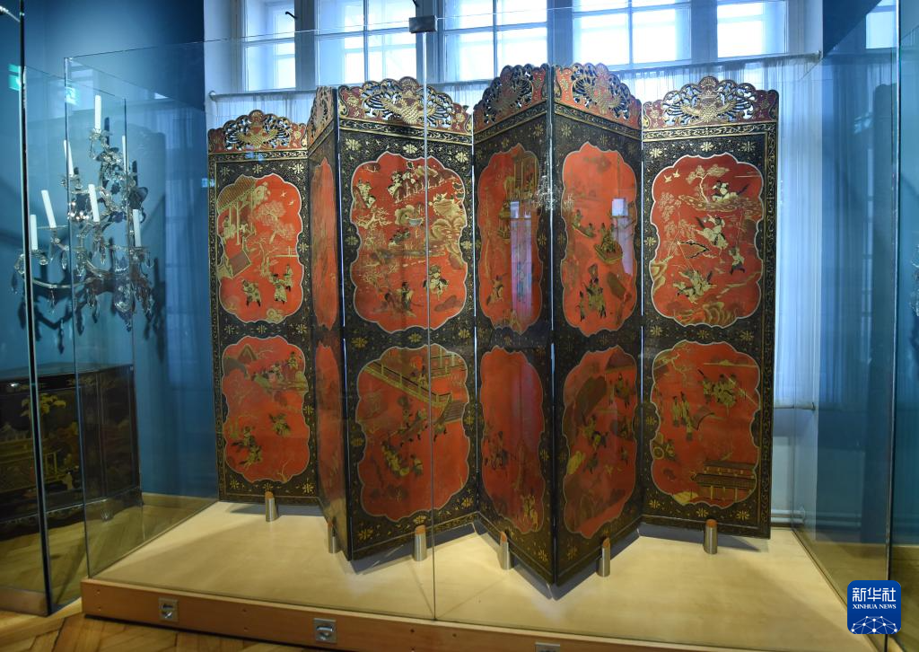 这是3月1日在维也纳家具博物馆拍摄的中国漆器屏风。