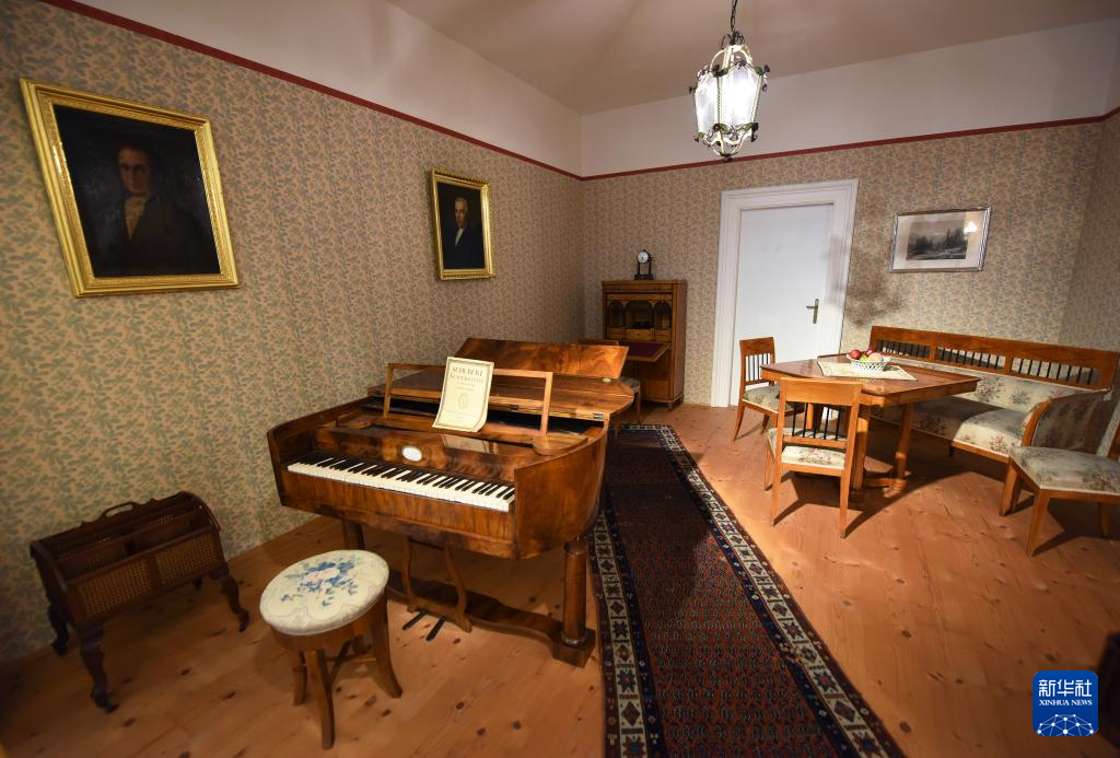 这是3月1日在维也纳家具博物馆拍摄的19世纪早期沙龙样板间。