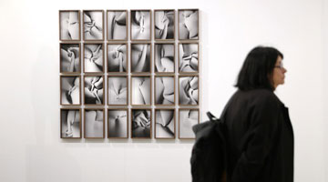 5月11日,参观者在希腊雅典扎皮翁宫欣赏天龙山石窟艺术展品。