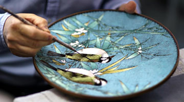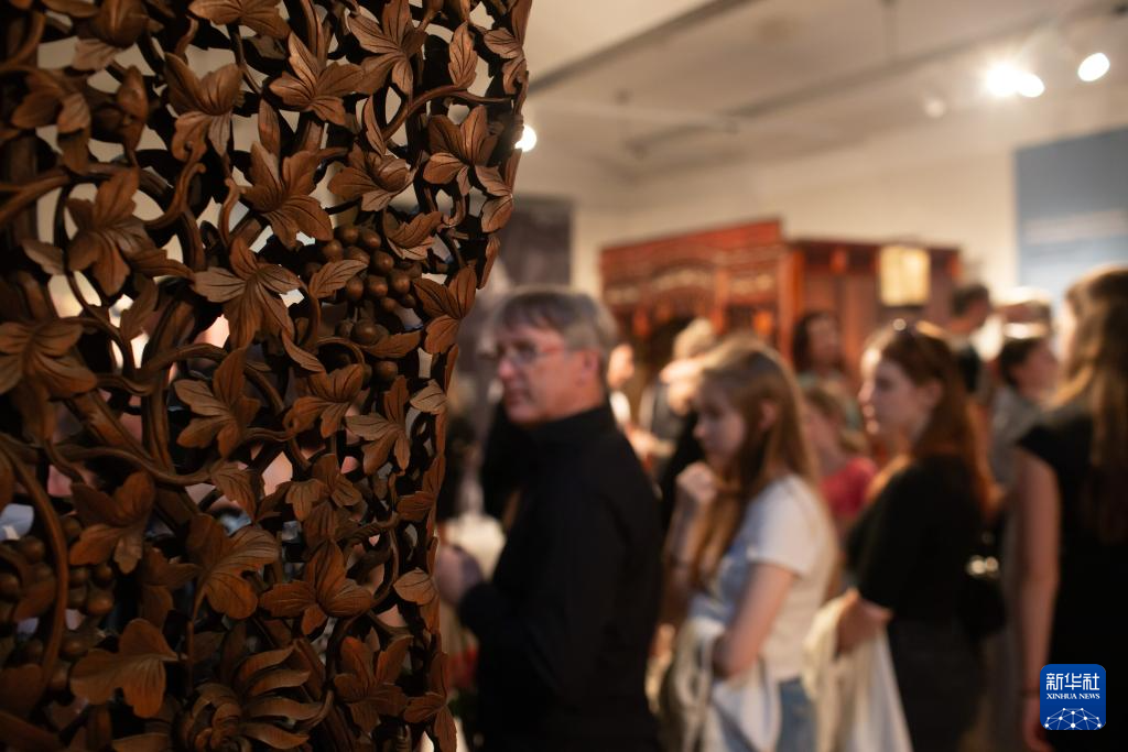 5月29日,在位于卢布尔雅那的斯洛文尼亚民族志博物馆,由故宫博物院专家修复的古建筑内檐装修木质花罩在“斯库谢克亚洲珍品文物展”上展出。