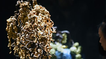 这是9月1日在宁夏博物馆拍摄的鎏金铜牛。