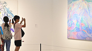 9月1日,游客在宁夏博物馆观赏贺兰山岩画。