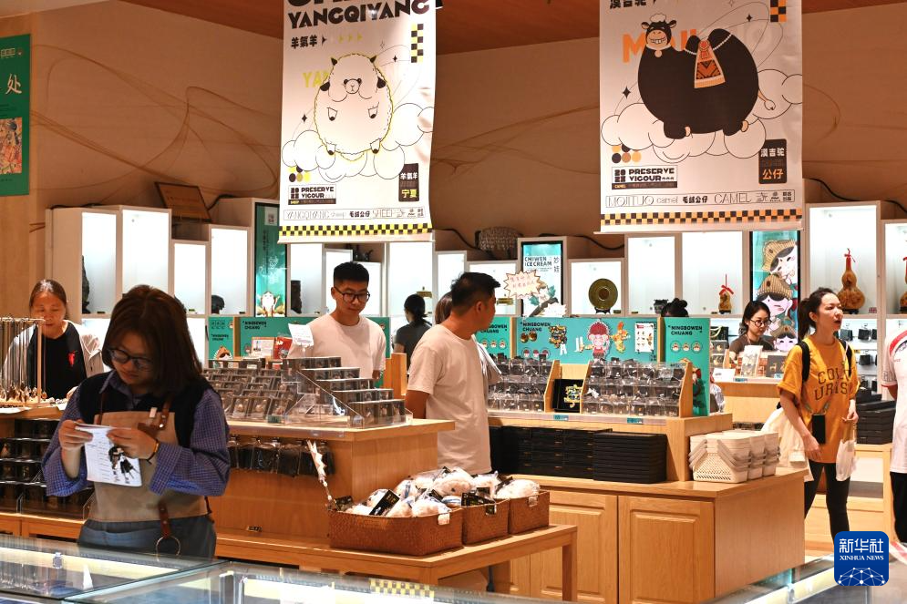 9月1日,游客在宁夏博物馆选购文创产品。