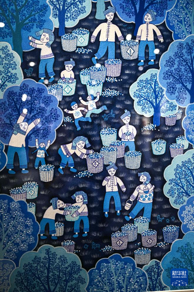 这是在柳州市群众艺术馆拍摄的侗族农民画(9月12日摄)。