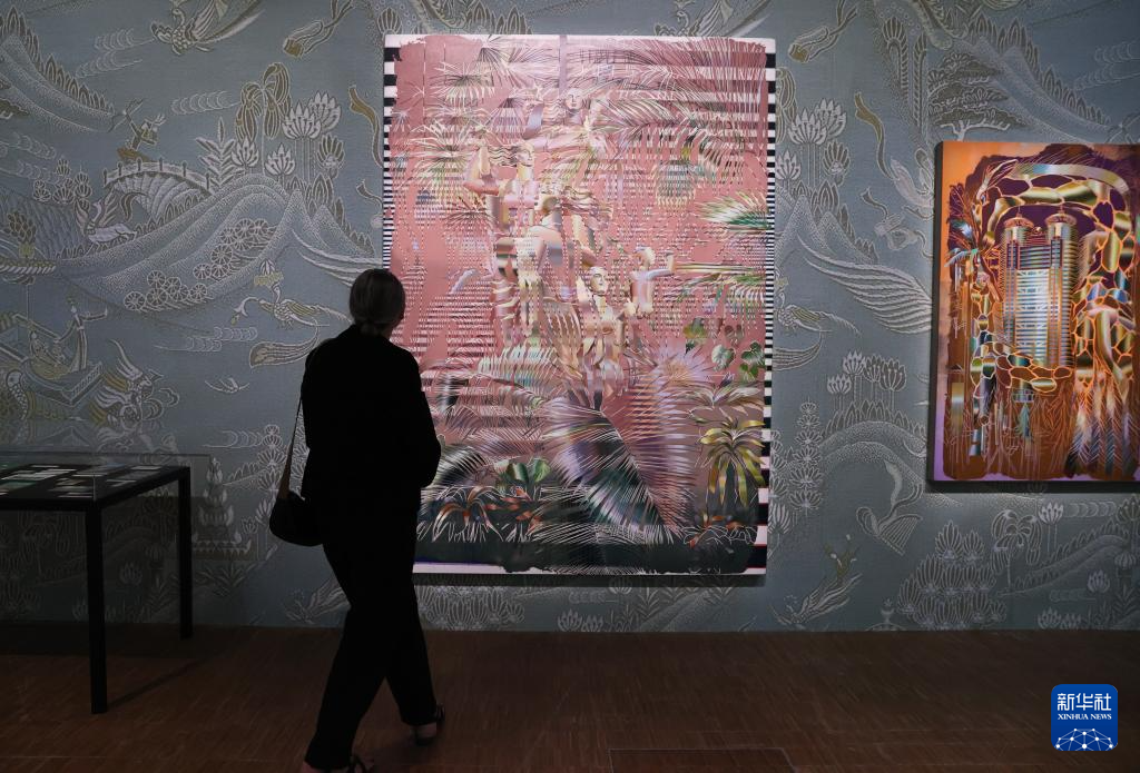 10月8日,媒体记者在法国巴黎蓬皮杜中心参观中国当代艺术家群展《目:中国境象》。