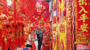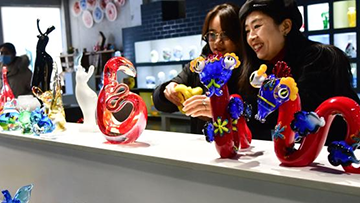 1月8日,苏红章在宁夏固原市隆德花灯传承基地生产车间查看 “蛇”元素花灯。