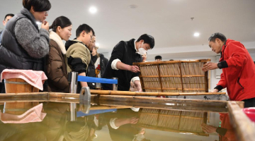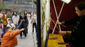 3月16日,在静安首发品牌馆,龙凤旗袍非遗传承人吴玉婷在展示手工盘扣樱花季系列新品。