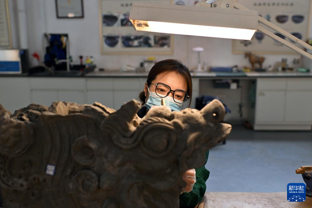 4月15日,在云冈研究院可移动文物修复室,工作人员在进行瓷器修复。