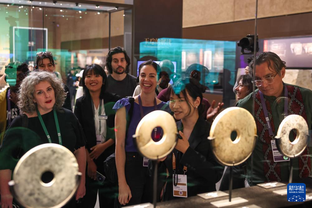 4月23日,参加第三届联合国教科文组织国际博物馆高级别论坛的嘉宾在参观良渚博物院。