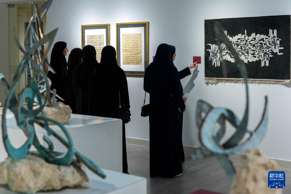 4月24日,人们参观卡塔尔多哈卡塔拉文化村举行的中卡书法交流展。