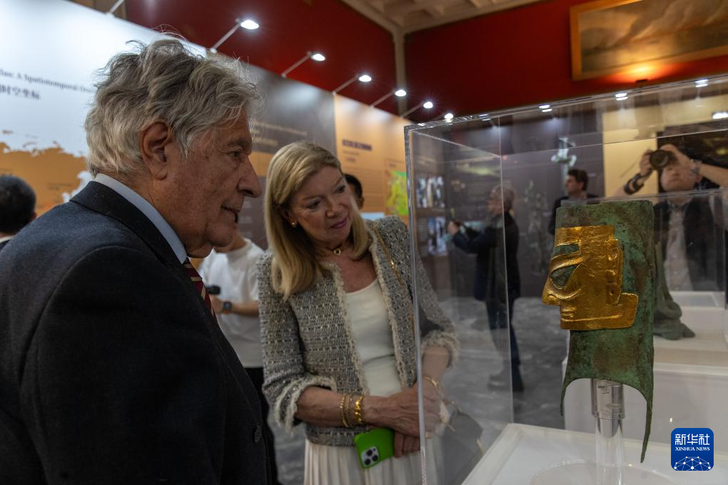 当日,“青铜之光——古蜀文明特展”在新斯米尔尼市政博物馆开幕。展览通过精美的文物复制品、3D打印技术和图文展示,生动呈现以三星堆—金沙遗址为代表的古蜀文明,吸引众多当地民众前来参观。