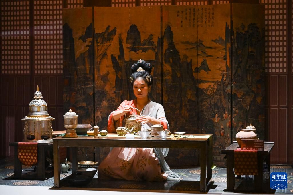 6月17日,在上海奉贤博物馆,演员展示茶道。