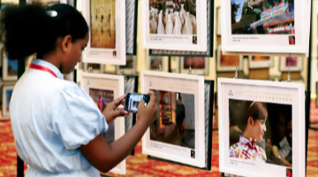 近日,在位于宁夏银川市贺兰县的稻渔空间乡村生态观光园里,题材多样的巨幅稻田画进入最佳观赏期,吸引不少游客前来观赏。