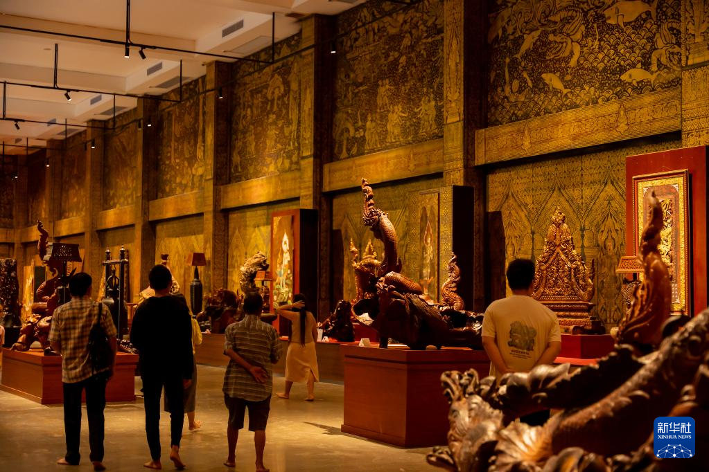 7月13日,游客在位于老挝首都万象的老挝艺术博物馆参观。