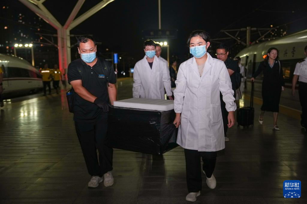 9月10日,在长沙子弹库战国帛书从北京运抵长沙南站后,工作人员搬运装有长沙子弹库战国帛书的箱子。