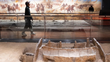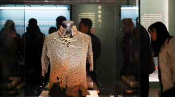 1月26日,在埃及吉萨的大埃及博物馆,观众参观开罗艺术展。