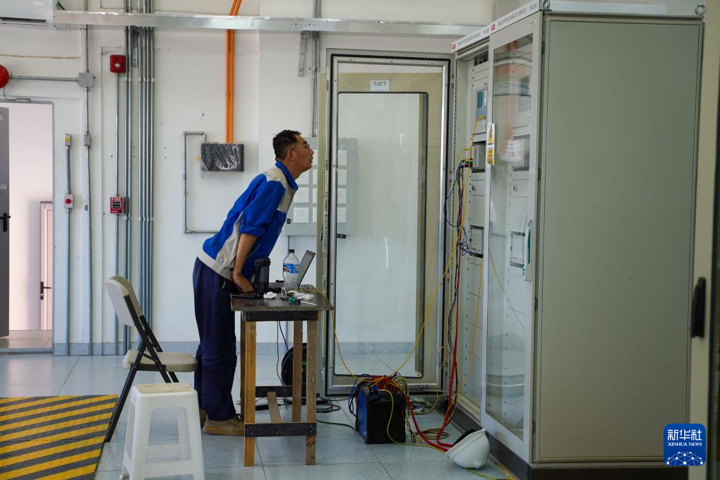 1月23日,工程师在乌拉圭中部塔夸伦博省张伯伦镇的张伯伦变电站内调试设备。新华社记者 朱雨博 摄