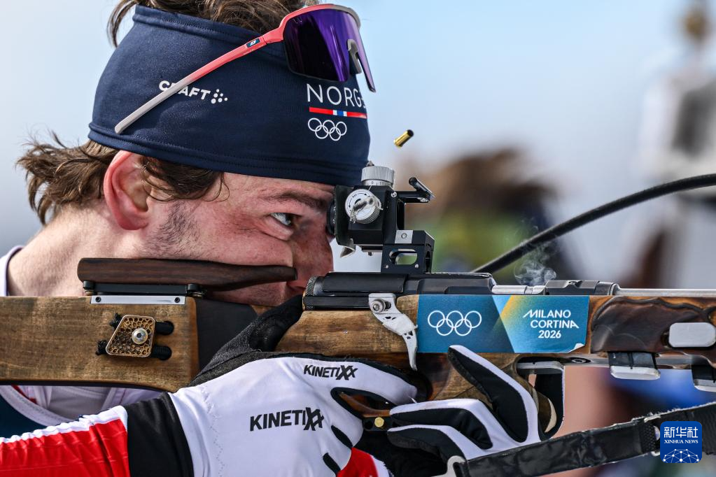 当地时间2月15日,米兰-科尔蒂纳冬奥会冬季两项男子12.5公里追逐赛在意大利安泰塞尔瓦举行。