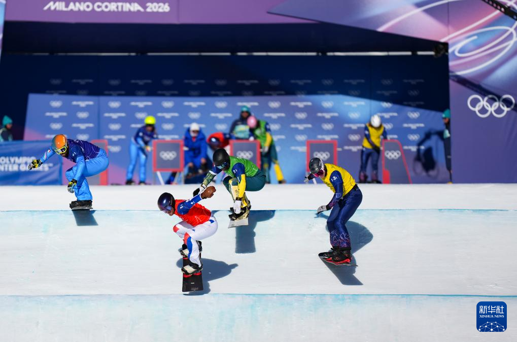 当地时间2月15日,米兰-科尔蒂纳冬奥会单板滑雪项目障碍追逐混合团体比赛在意大利利维尼奥举行。