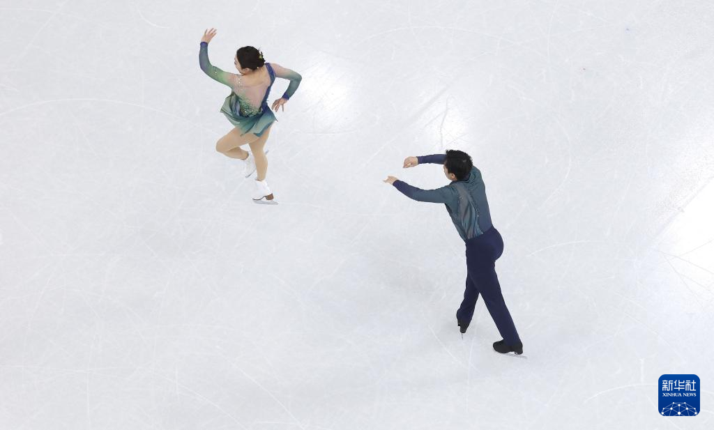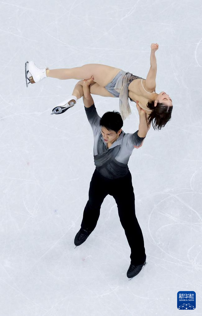 2月16日,日本组合三浦璃来(左)/木原龙一在比赛中。他们获得双人滑项目冠军。