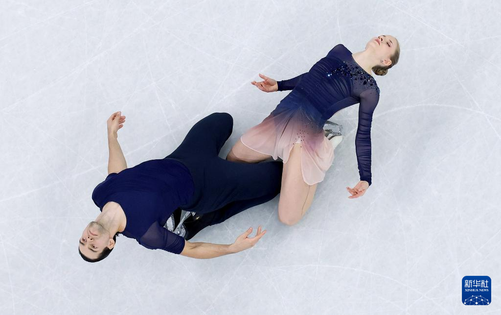 2月16日,美国组合埃莉·甘/奥谢(下)在比赛中。他们获得双人滑项目第九名。