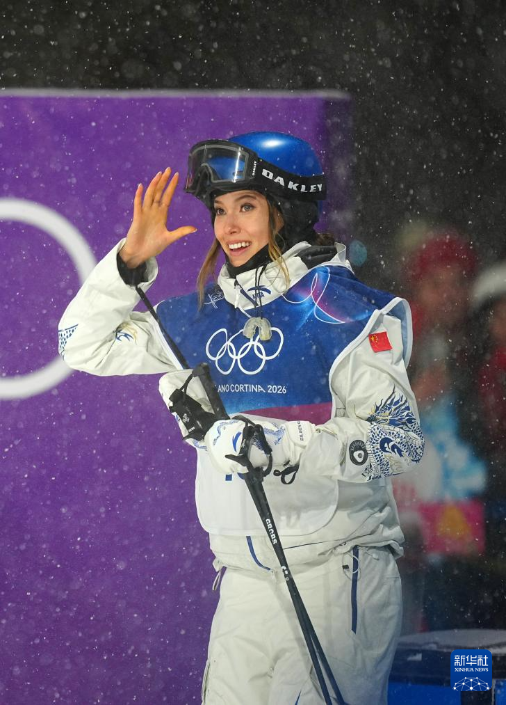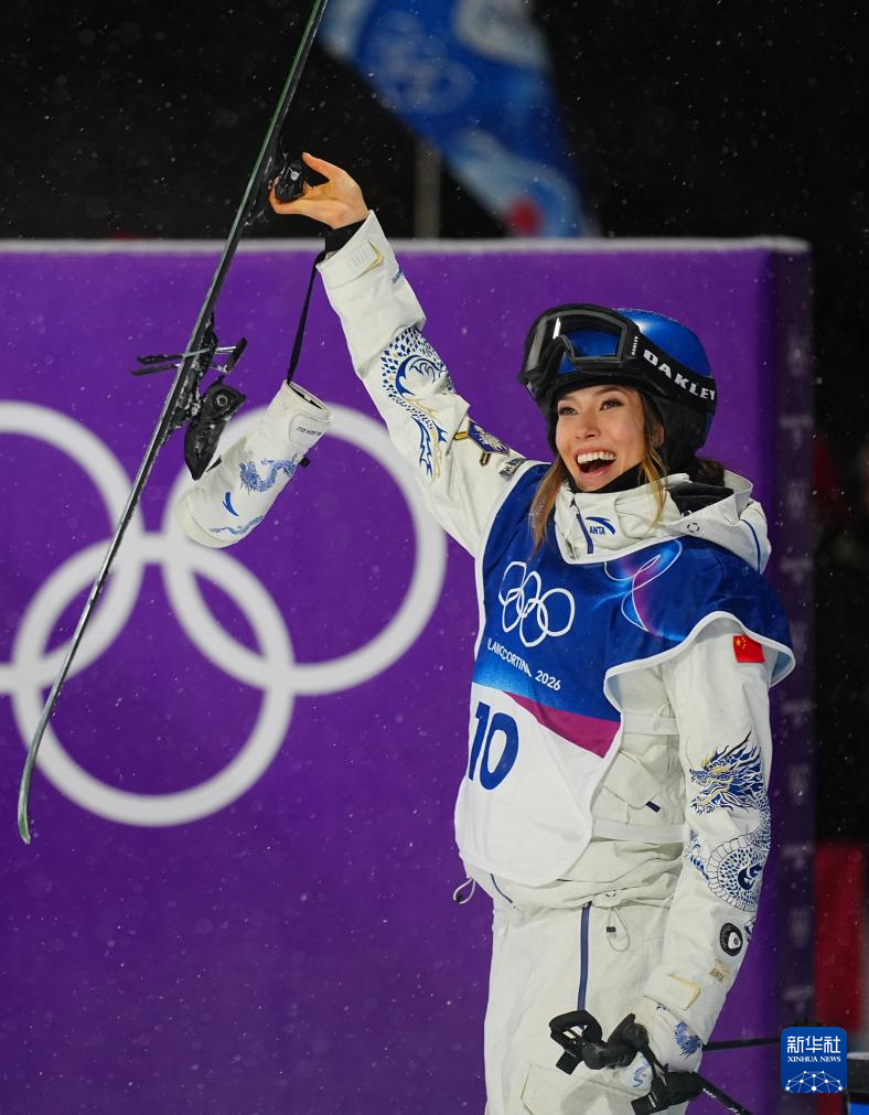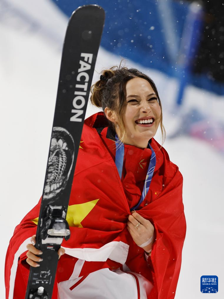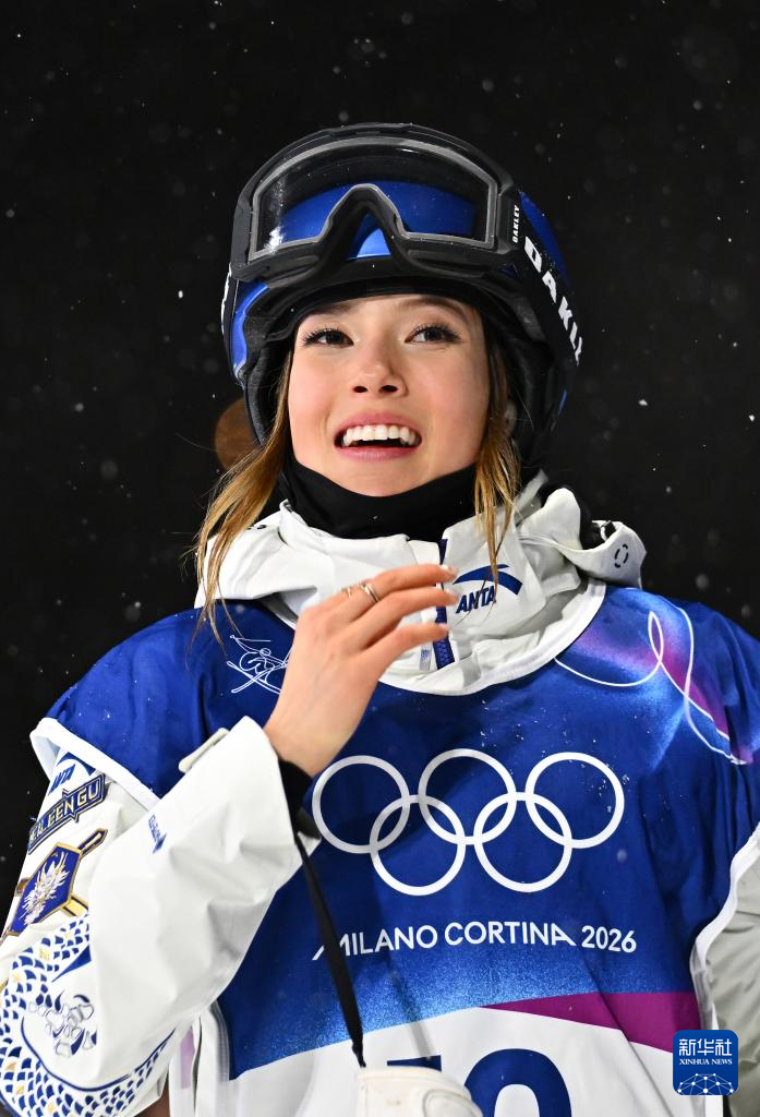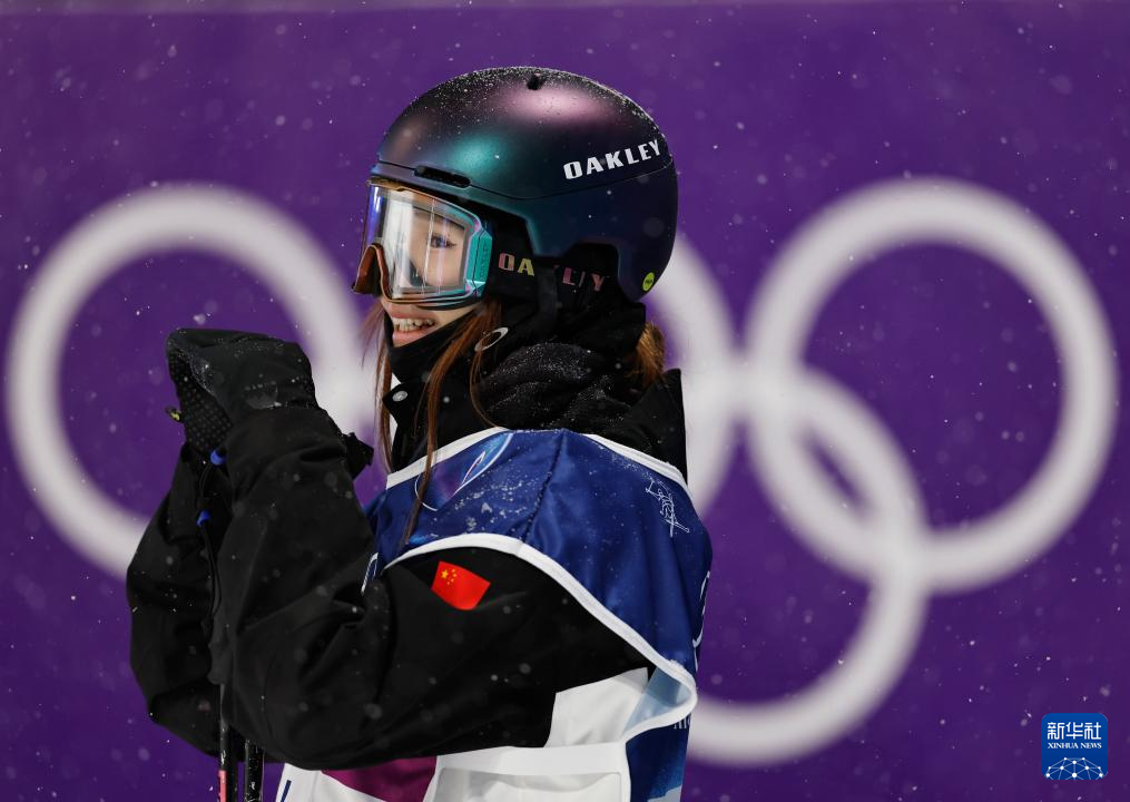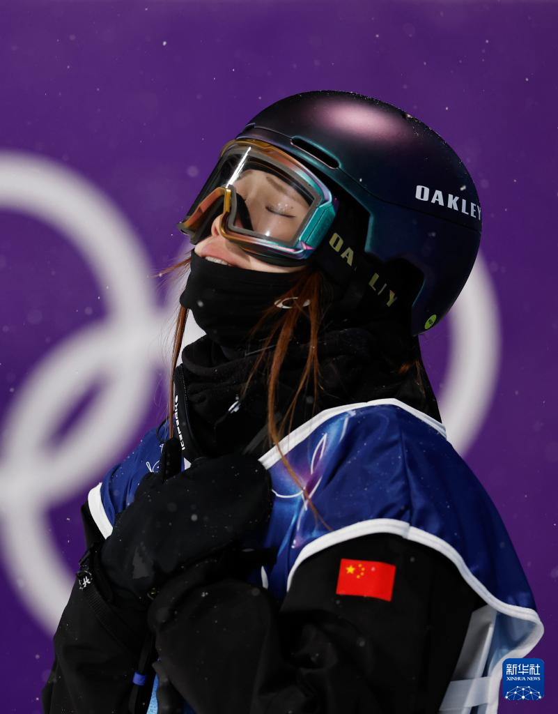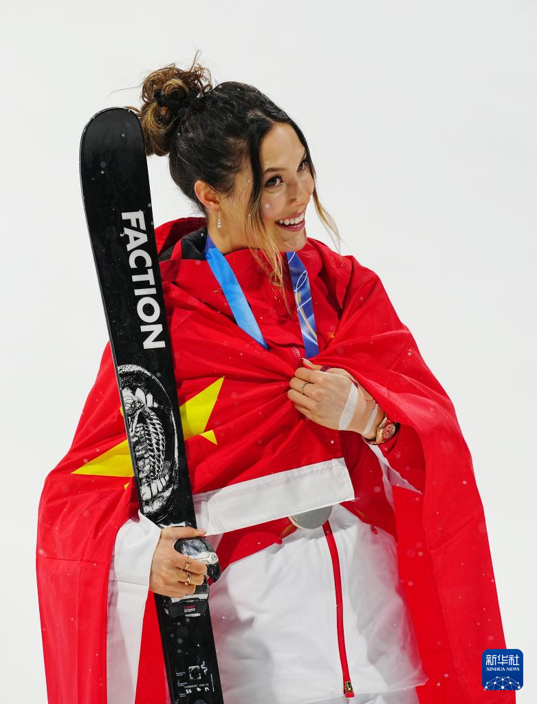 2月16日,中国选手谷爱凌在第三跳后。她获得亚军。