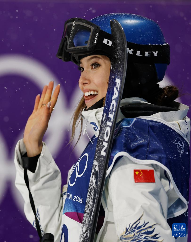 2月16日,中国选手谷爱凌在第三跳后向观众致意。她获得亚军。