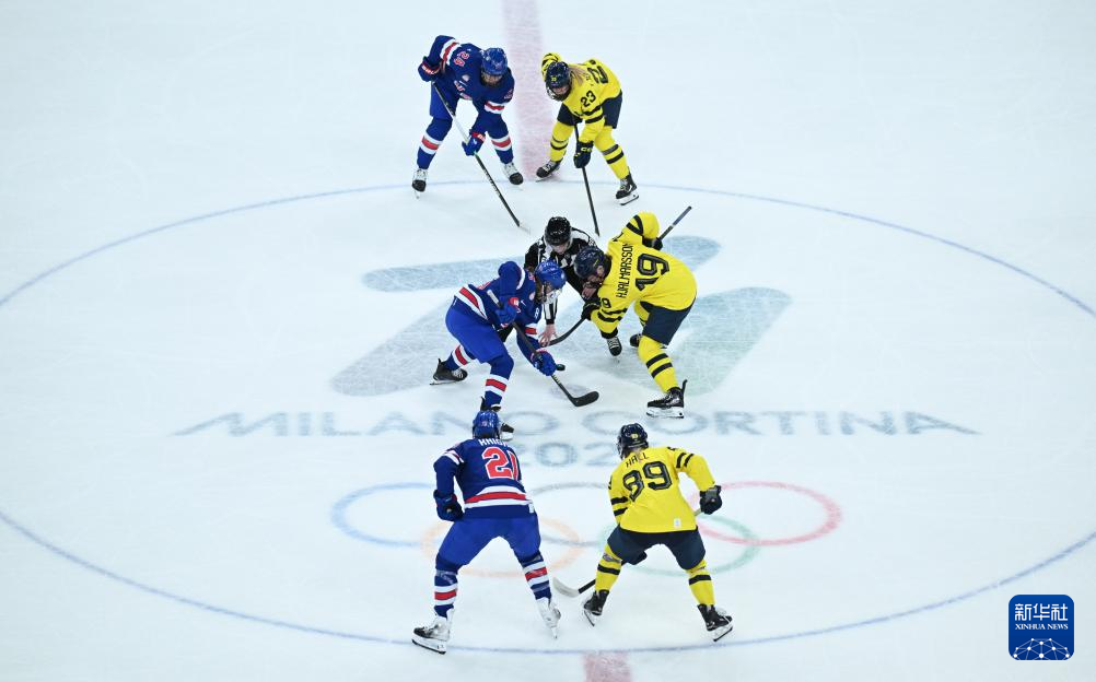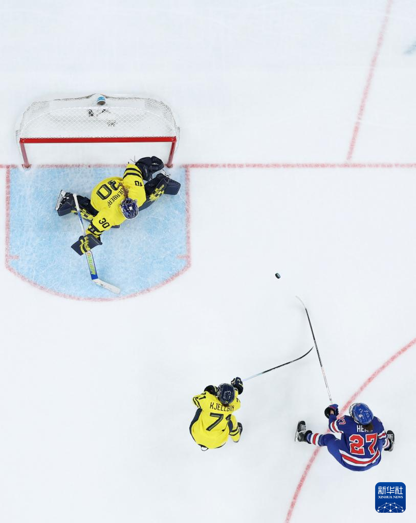 当地时间2月16日,在意大利米兰举行的米兰-科尔蒂纳冬奥会冰球项目女子半决赛中,美国队5比0战胜瑞典队。