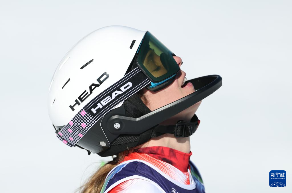 2月18日,美国选手希夫林在比赛后。她获得冠军。
