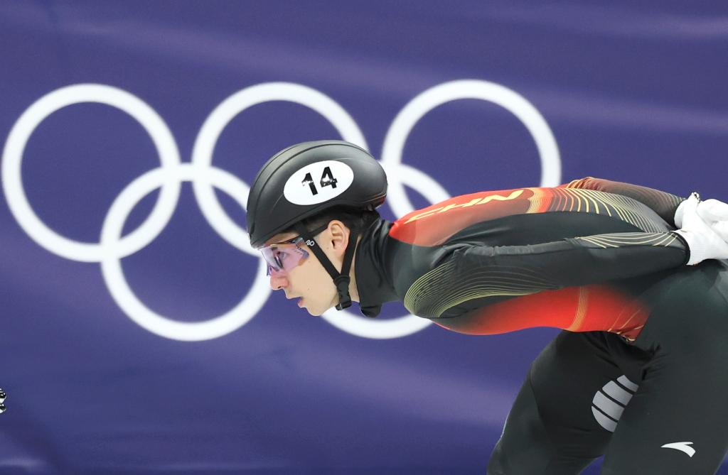 2月14日,中国选手刘少昂在男子1500米四分之一决赛中。新华社记者 李明 摄