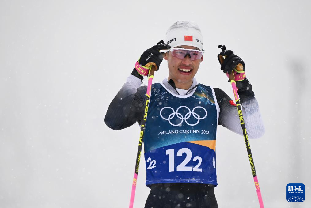 2月19日,中国队选手赵嘉文在冲线后。