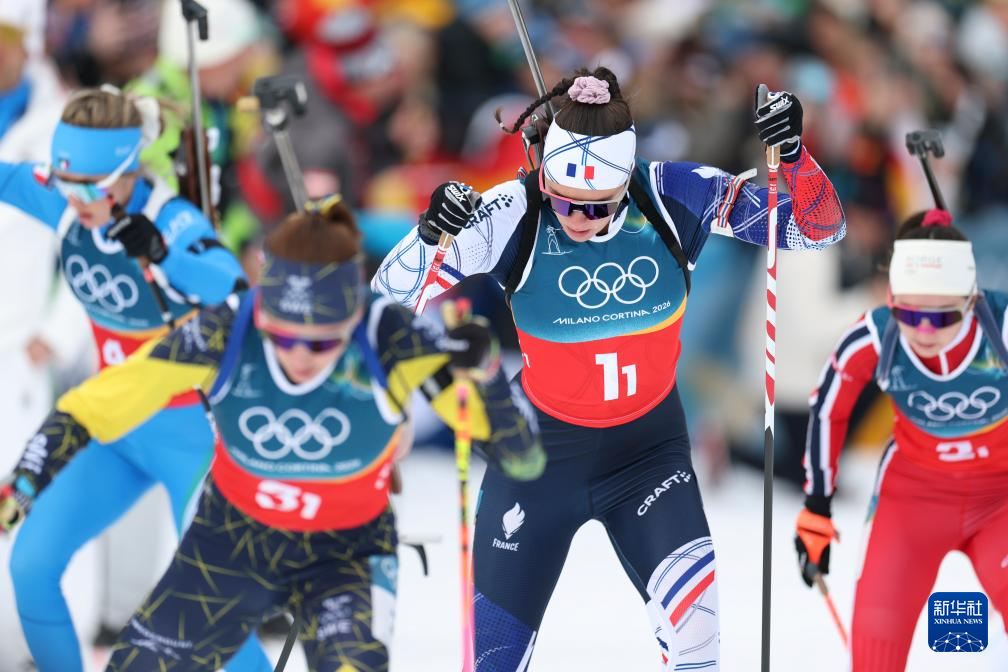 2月18日,法国队选手卡米耶·贝内(中)在比赛中。