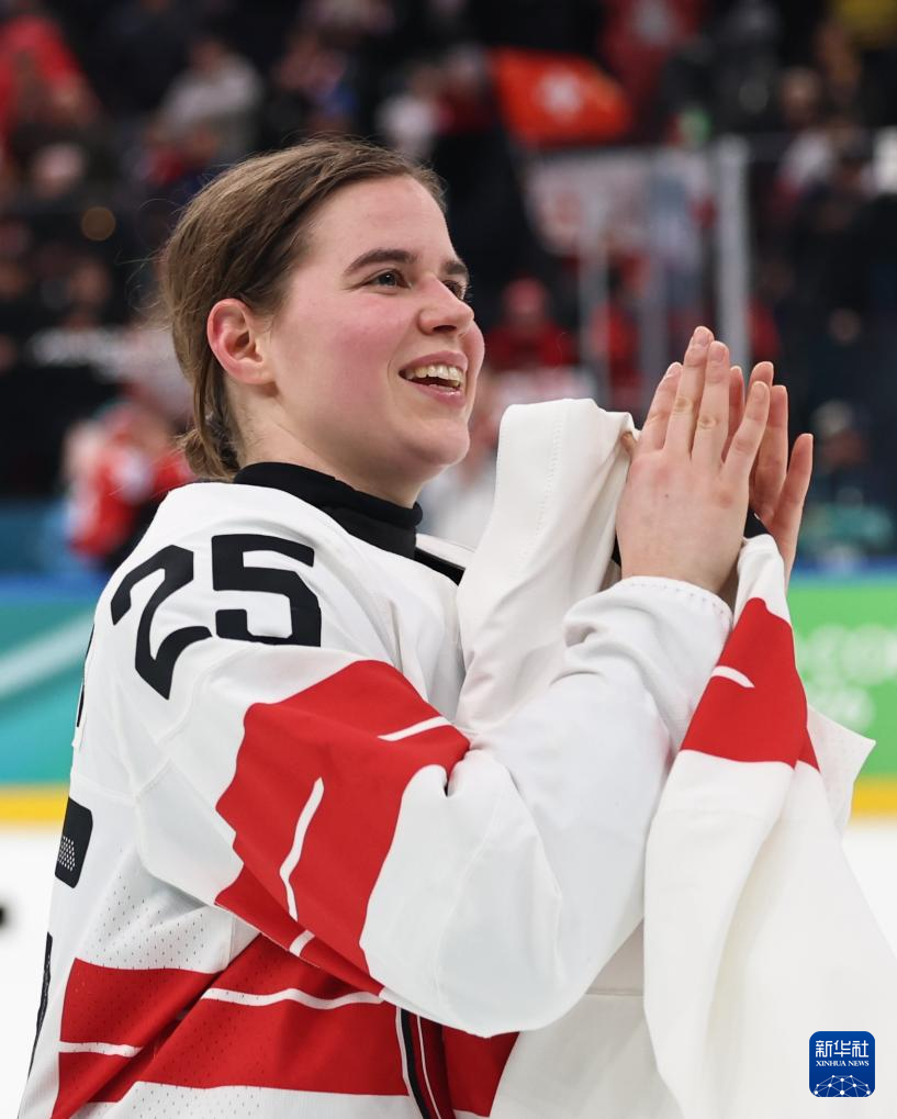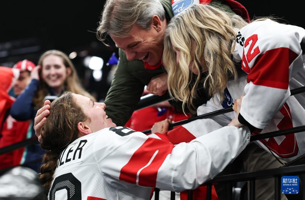 2月19日,瑞士队球员阿林娜·米勒在赛后庆祝。