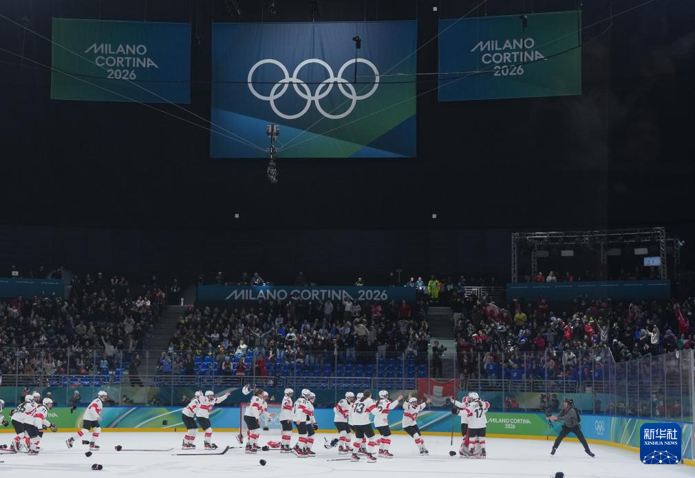 2月19日,瑞士队球员阿林娜·米勒在赛后庆祝胜利。